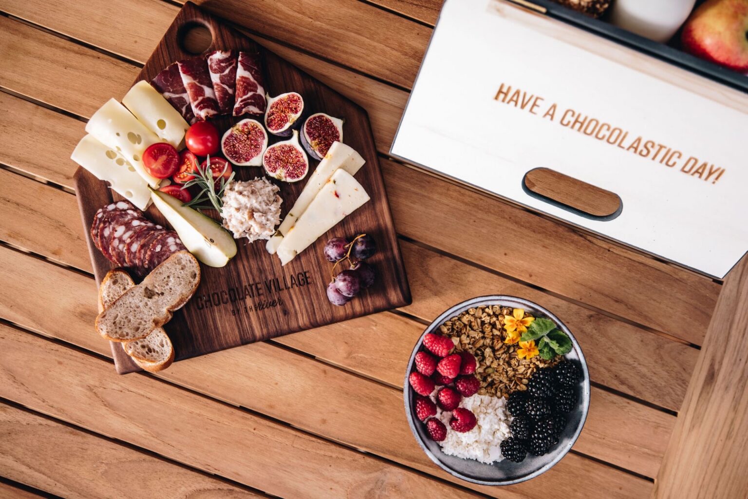 Neste morgen våknet jeg opp til fuglekvitter, nydelig utsikt og en picnickurv med variert og deilig frokost, uten sjokolade! Heldigvis sier nå jeg, sjokolade ble det ble det nok av dagen før.